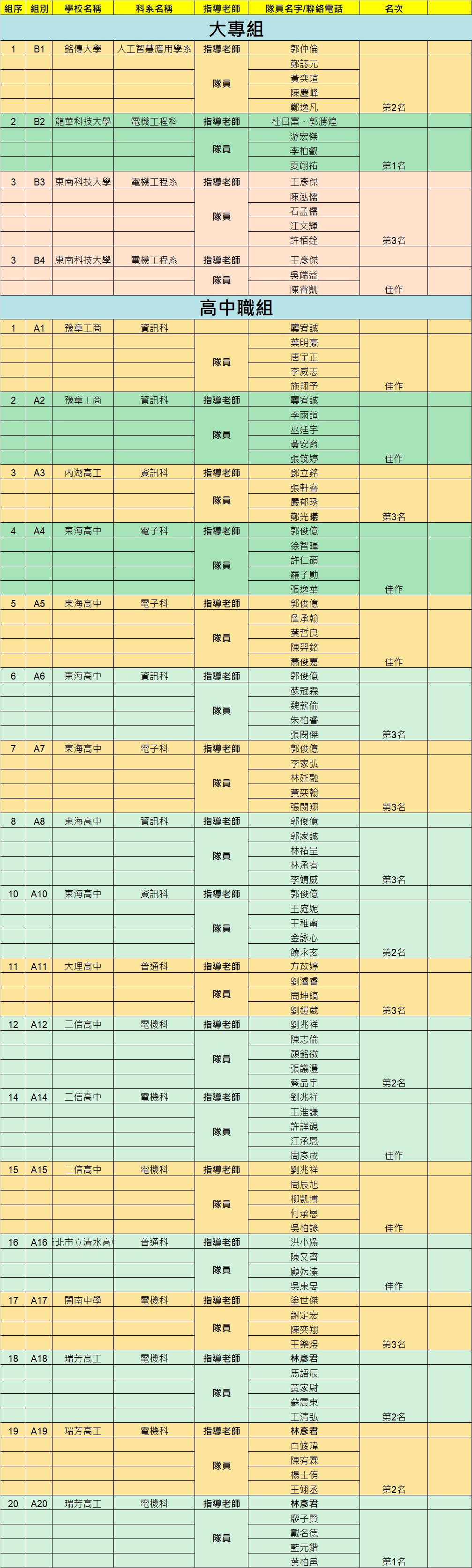 得獎公告名單